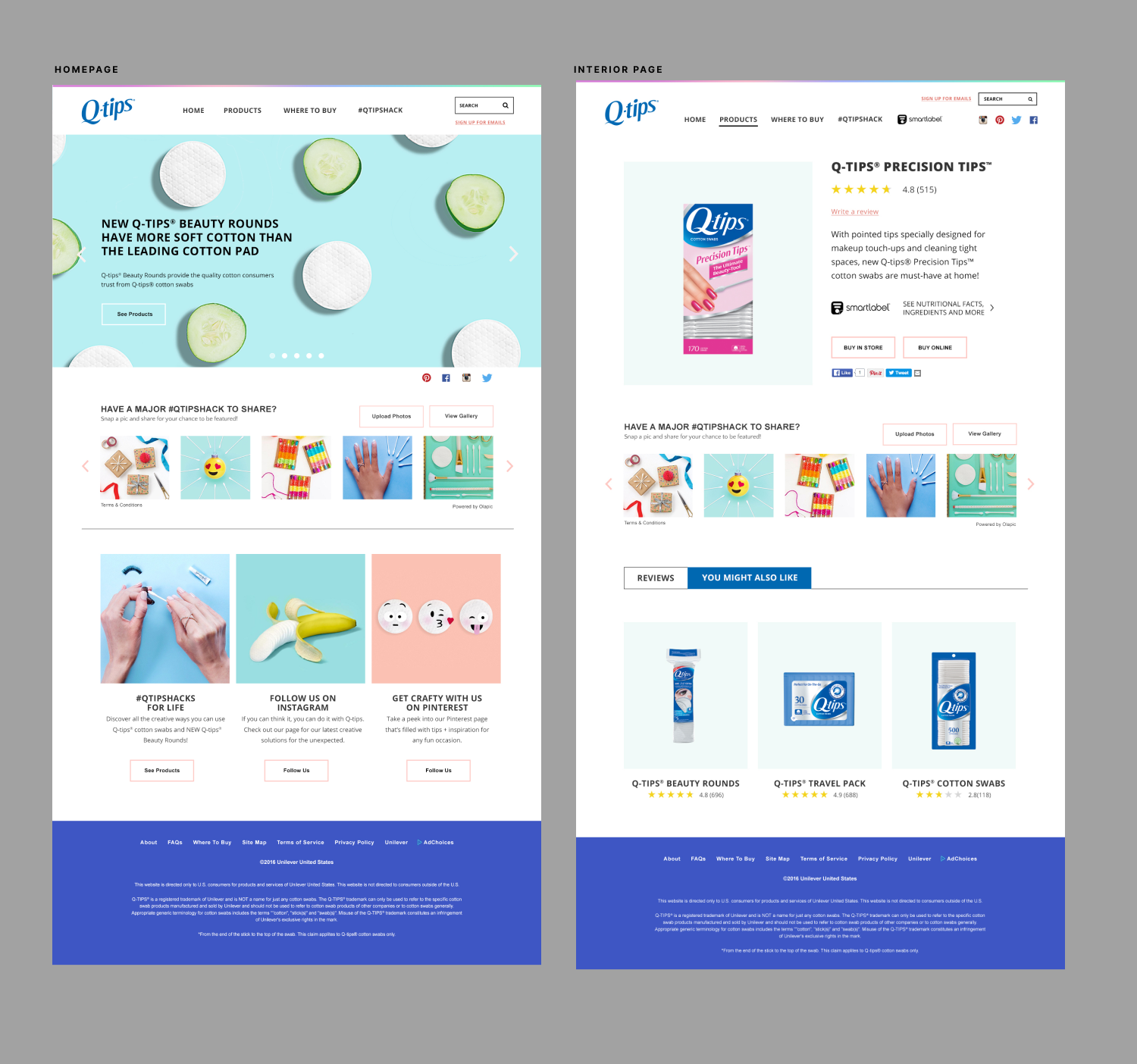 Social sharing features encourage users to post their Q-tips® experiences, while links to Q-tips® social channels drive ongoing engagement. This connects the website to the larger Q-tips® community and keeps users involved.Accessibility & Responsiveness: